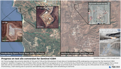 Figure 1. Progress on test silo conversion for sentinel ICBM. (Credit: Federation of American Scientists/Google Earth).